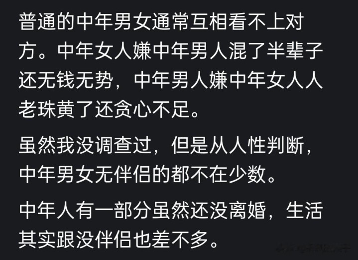 说得对,有伴侣的都互相看不上对方,两看相厌。