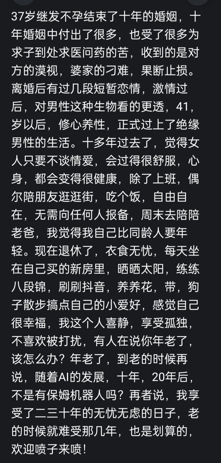 其实,这滋味,是复杂又多样的。有孤独、有自由、有期待,但更多的,还是一种对生活的热爱和坚持。中年女性,无论有没有伴侣,都能活出自己的精彩,不是吗?所以,各位朋友们,要珍惜现在,活好当下,未来,一定更美好!